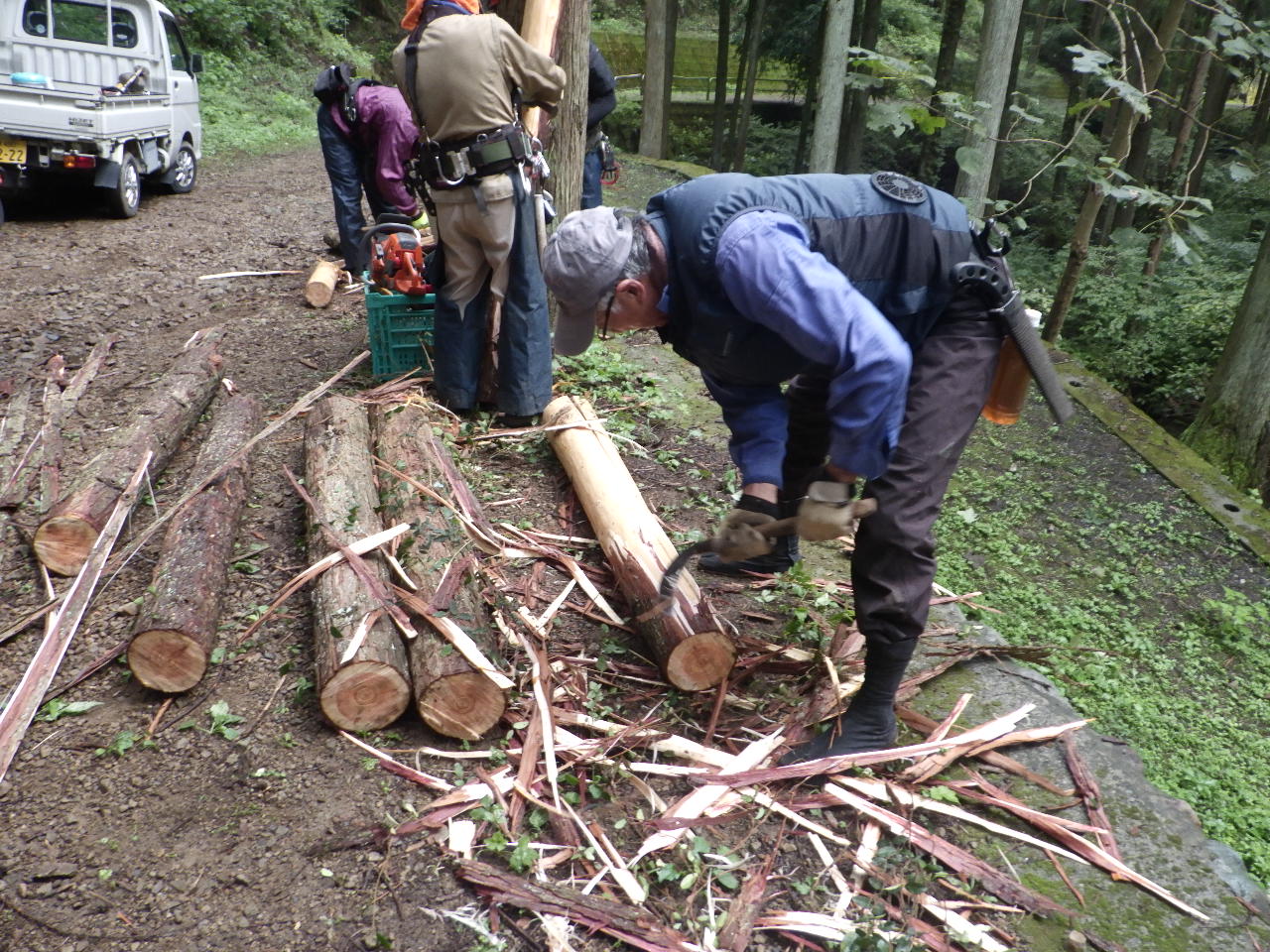 2024年9月28日大地沢保有地整備(ハイキングコース整備)(間伐材の活用)をおこないました。