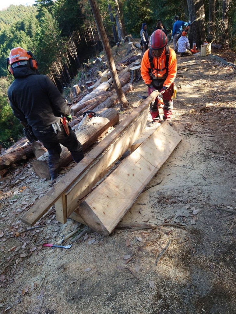 草戸山伐採木運搬